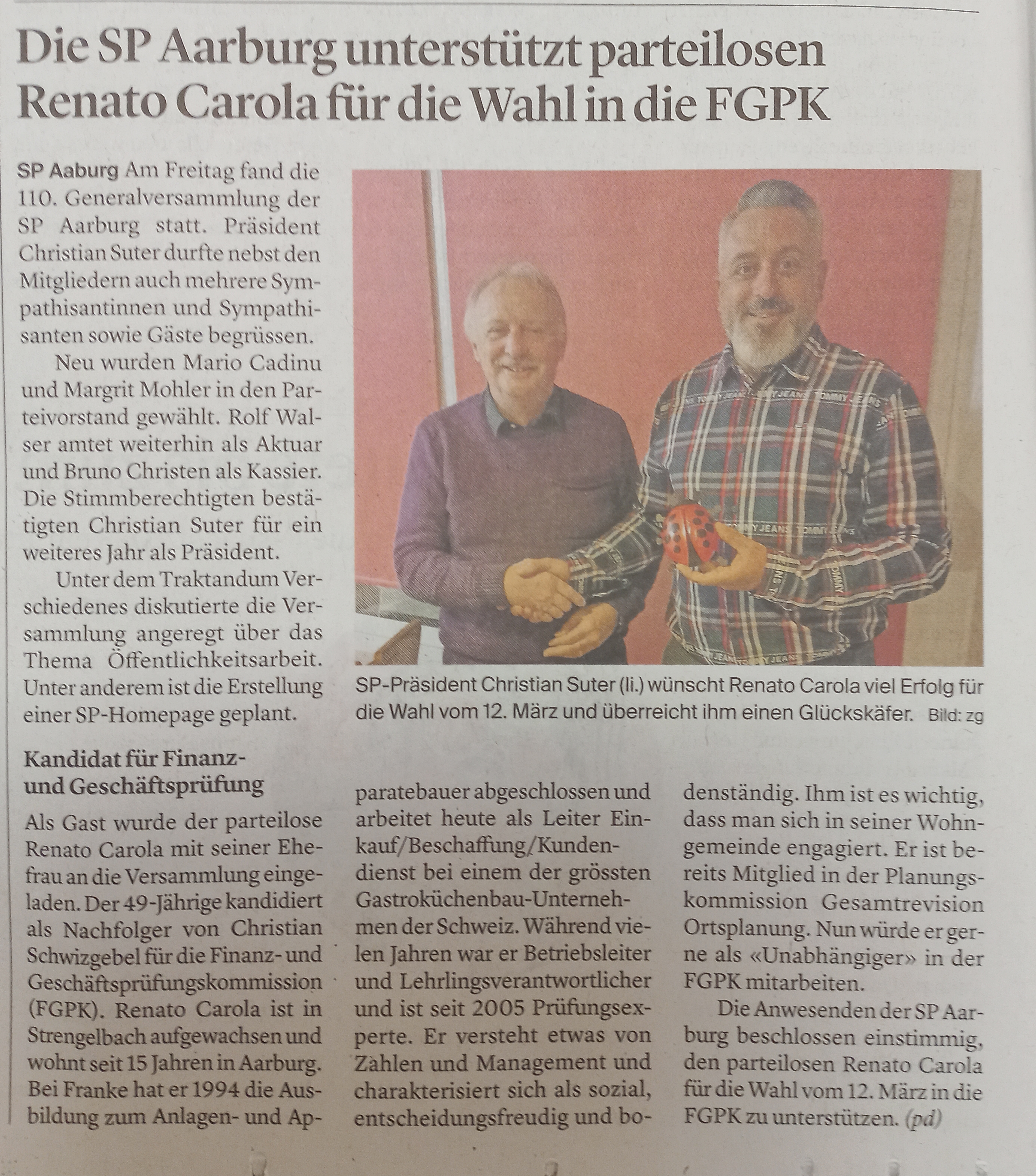 - Zeitungsbericht GV SP Aarbug vom 28.03.2025 im ZT